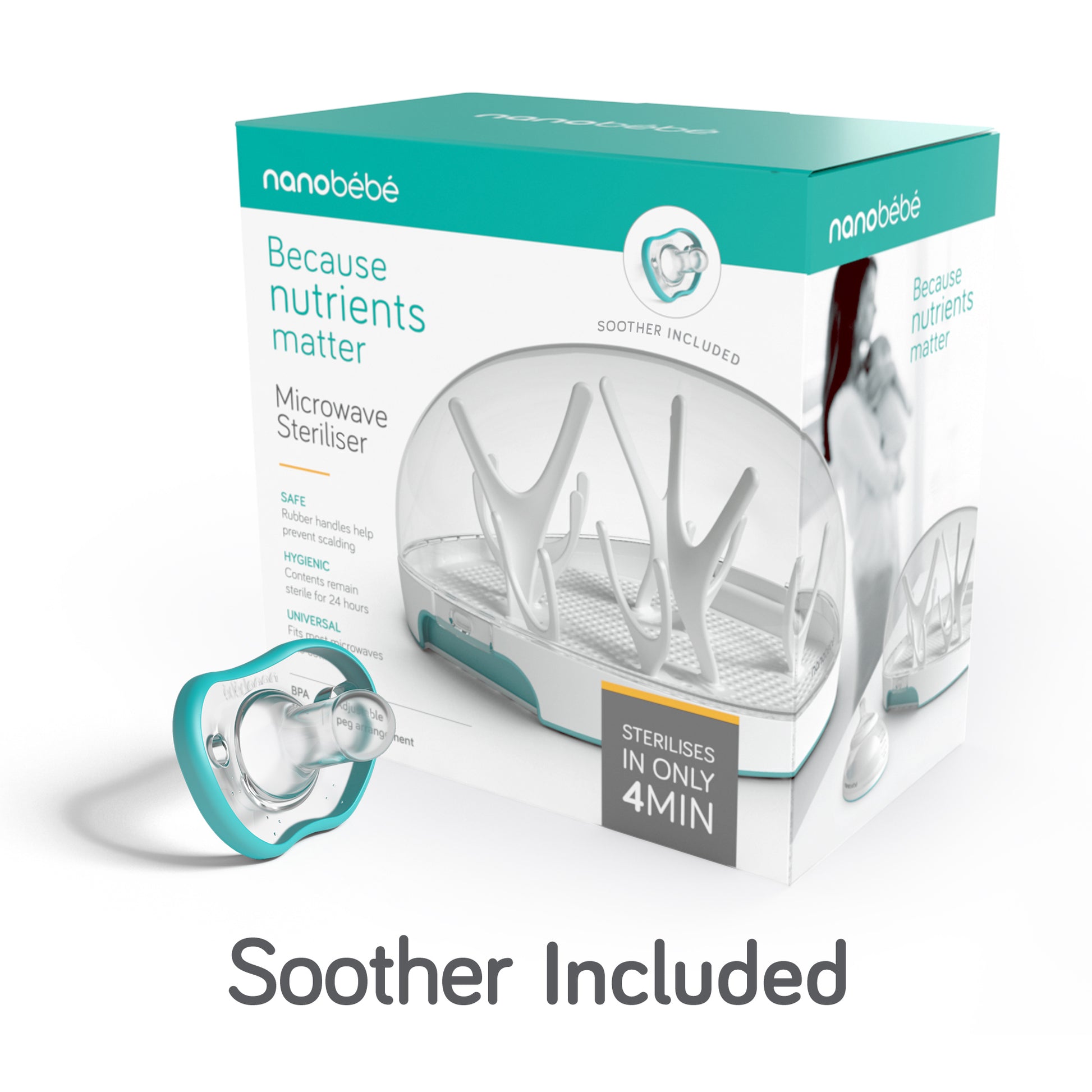 Ensure that your baby’s feeding accessories are safe and germ-free with our microwave steam steriliser. This steriliser eliminates 99.9% of household bacteria in just four minutes, and with a closed lid, its contents remain sterile for 24 hours, so you can sterilise before bed and wake up to sterilised bottles ready for use. It’s a time and energy saving solution to your sterilising needs.