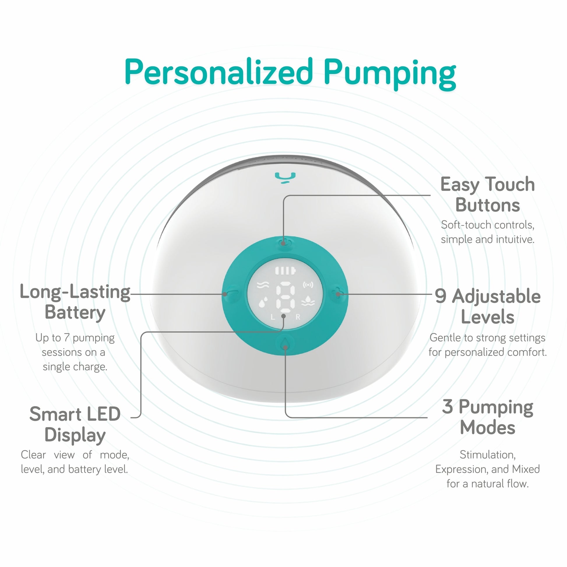 - Long lasting Battery - Up to 7 pumping session on a single charge